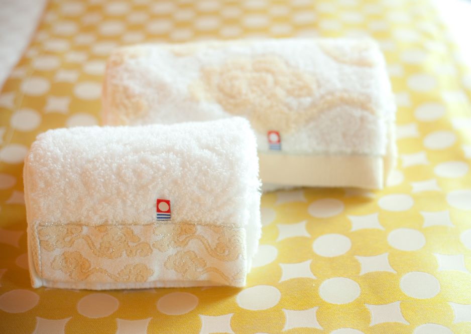 The bed throw features the Namban Shippo pattern, while the Imabari towels
