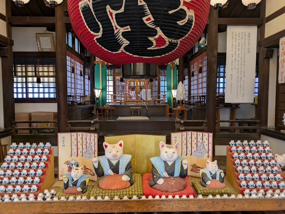 Finally, let’s look at the popular lucky day “Hatsu-tatsu Mairi,” known for its adorable figurines of cats wearing kamishimo (a traditional Japanese two-piece formal outfit worn by samurai and courtiers). On the first day of the dragon in each month, you visit the four subordinate shrines—Tanekashi-sha, Nankun-sha, Otose-sha, and Asazawa-sha—in order. If you make this visit once a month for four years, for a total of forty-eight visits, it is called “shiju-hattatsu” (a pun for perpetual development), and this auspicious wordplay is said to ensure that good fortune will continue throughout your life. The beckoning cats enshrined at Nankun-sha can also be collected: once you’ve gathered forty-eight small cats, you can exchange them for a medium cat as proof that your vow has been fulfilled, and when you further collect two medium cats plus another forty-eight small cats, you can trade them for a large cat. Once you start collecting them, you’ll find yourself completely hooked!