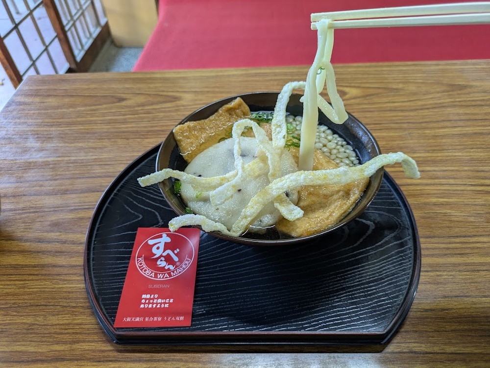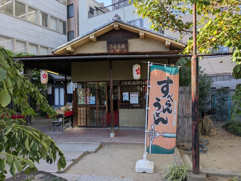 Finally, be sure to stop by Hoshiai Saryo, a must-visit for those praying for success in exams. The udon here is called “suberan udon” (non-slip udon): the noodles have lengthwise slits so they don’t slip off your chopsticks, making them a popular good-luck food among exam students who don’t want to “slip up.” They also sell dried noodles to take home, and many people buy them as late-night study snacks for test-takers.