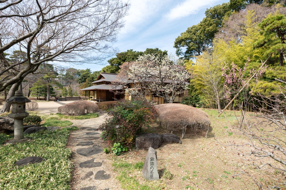 This elegant teahouse in Ninomaru Garden originally stood in Fukiage Garden, but was relocated during development of the Imperial Palace East Gardens in 1968. The building was reconstructed in 1970 and is currently not available for use as a teahouse. Only exterior viewing is permitted. The structure, which evokes Japan’s ancient history, beautifully harmonizes with the garden landscape, creating an elegant scene.