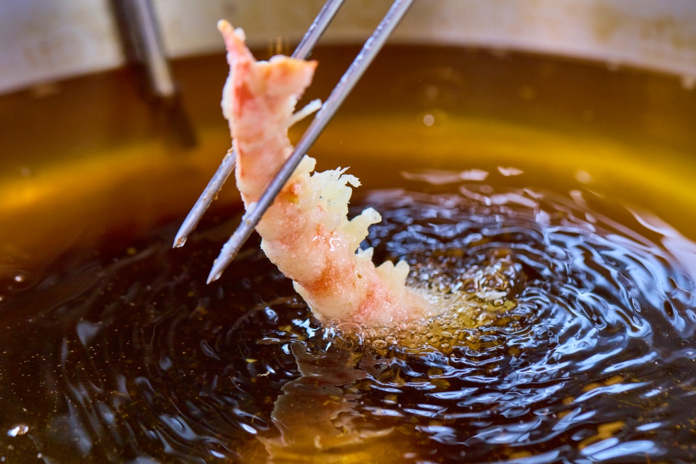 「大切にしているのは、揚げ具合とタイミングです」と、中村料理長。食材の状態を見ながら、衣の状態や油にくぐらせたときの音に耳を澄まし、視覚と聴覚を使って揚がりを見極めていきます。目の前では、食材が整えられ、衣をまとい、油に入る一連の動きが続きます。立ち上る香り、油から引き上げられる一瞬まで、その流れを途切れることなく追うことができます。料理の味わいに、音や香り、所作が重なっていく。その体験こそが、天ぷらの魅力です。