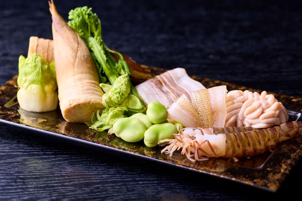 天ぷらの素材は、一年を通して移ろっていきます。春は「合馬のたけのこ」や春野菜、初夏には稚鮎、秋には鱧や松茸、冬には白子など、その時季、この土地だからこそ出会える素材を楽しむことができます。伝統ある「リーガロイヤルホテル」の味を受け継ぎながら、温故知新を大切にすること。その姿勢は、料理にとどまらず、空間やサービスにも息づいています。